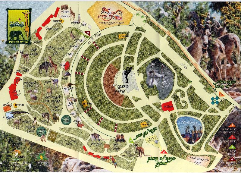 | Michael Amend: | Aus Israel stammt dieser Plan des Hayparkes in Kryat Motzkin, laut ders ehr bescheidenen Homepage einerd er größten Zoos des Landes. Man beachte oben rechts das Foto, hinter den Nubischen Steinböcken steht ein Oribi. Bei isis macht der Zoo nicht mit. (11.10.2008, 06:51) | ||
