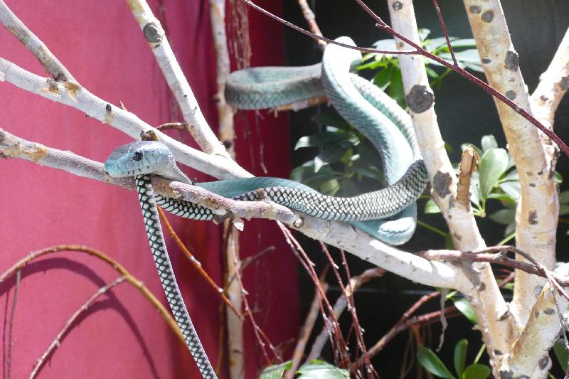 | zollifreund: | muss ich etwas korrigieren - es waren nicht 15 Vitrinen mit Klapperschlangen sondern mit Giftschlangen. Aber der Dom hat zwei Ebenen, auf der oberen Ebene waren auch noch zahlreiche, dann deutlich größere Terrarien mit weitern Klapperschlangen, aber natürlich auch Giftschlangen aus Afrika und Australien. So z.b. Boomslang, Todesotter, Echte Jameson-Mamba (Bild), Inland- und Küstentaipan, Tigerotter, etc. (21.09.2025, 21:07) | ||