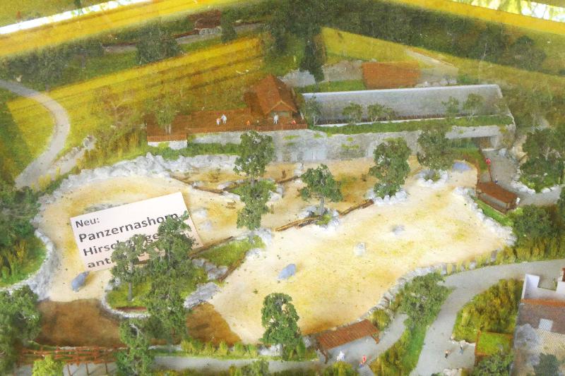 | cajun: | Das Haus für die Panzernashörner (Gemeinschaftshaltung mit den HZA) verschwindet als Baukörper im Hang unterhalb der Mesoanlage. Für Besucher ist es begehbar geplant und umfasst den bisherigen Bereich der HZA/ PA- Hirsch Kombi, sowie das Muntjak Gehege. Wie gesagt ließ sich das Modell nur minderwertig fotografieren. (24.04.2024, 12:04) | ||