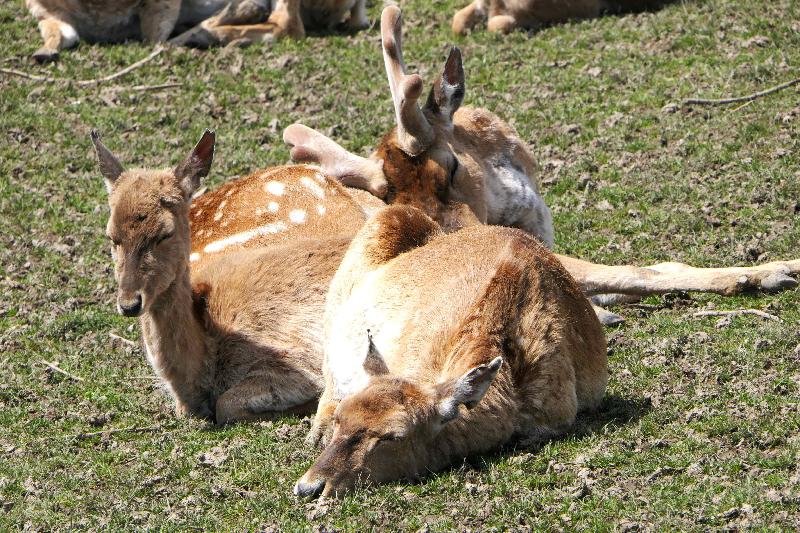 | cajun: | Ein Muss im Opel Zoo: Die Zuchtgruppe Mesopotamischer Damhirsche. Ich zählte 26 Tiere, wie beim Lotto: Ohne Gewähr. :-) Auch hier war ein Teil der Doppelanlage gesperrt, vermutlich ebenso zur Schonung der Grasnarbe. (24.04.2024, 13:11) | ||