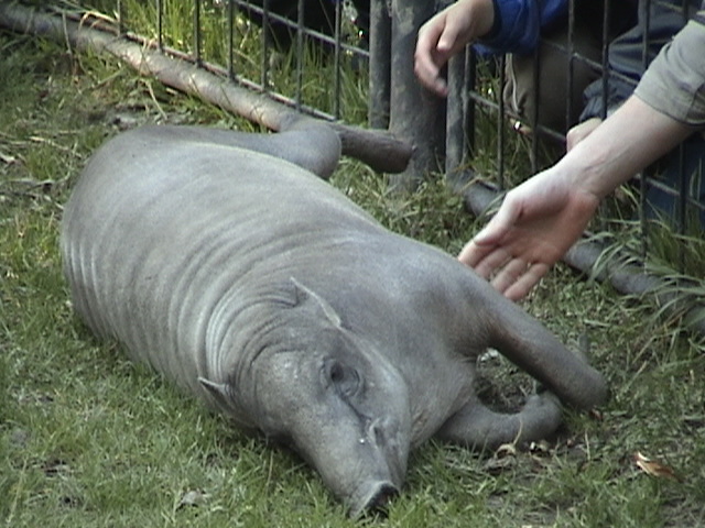 | Zoosammler: | Schön auch eine Szene vor dem Flußpferdhaus in der Wilhelma (es geht um einen Schabrackentapir): "Boah ey, was is'n das fürn Viech?" "Keine Ahnung, bestimmt ein Affe, da gibts doch so komische." (09.06.2006, 00:00) |