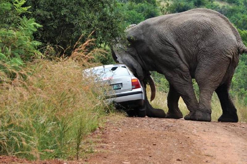 | W. Dreier: | Das ist Ele-Bulle Marula aus dem Pilanes-NP. Der mag keine VW-Autos bestimmten Typs.. Das Resultat (01.01.2023, 10:41) | ||