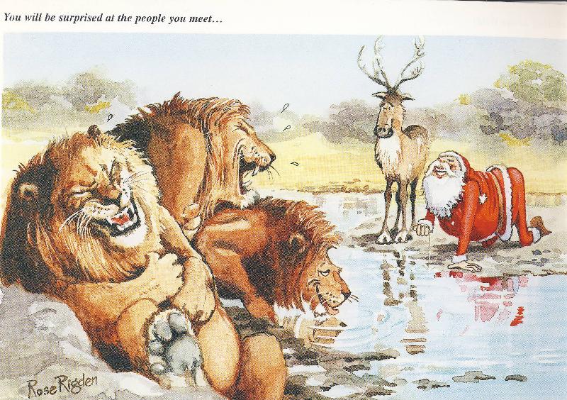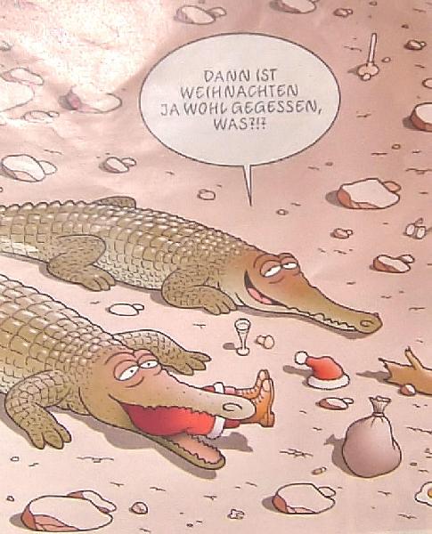| Michael Mettler: | Allen Rentieren einen angenehmen Arbeitstag, allen Ochsen und Eseln eine gelungene Aufführung, allen Hirschen frohe Geweihnacht, allen Teilziehern: Achtung, auf eurer Himmelsbahn kommt euch ein Geisterschlitten entgegen, allen Raubtieren rohe Festtage, allen Nachttieren eine stille Nacht, allen Faultieren ein beschauliches Abhängen, allen Bären: Probierts mal mit Gemütlichkeit, allen Winterschläfern: Ihr verpasst was, allen Elefanten und Kamelen: Freut euch, bald gibts wieder lecker Bäume, allen Truthähnen und Gänsen: Kopf hoch, wenn ihr es bis jetzt geschafft habt, stehen eure Chancen gut! Und zoo weiter..... FFfF (Frohes Fest fürs Forum) Michael (24.12.2006, 15:33) | ||