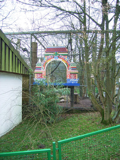 | Michael Mettler: | Dafür gäbe es noch ein weiteres Beispiel, nämlich die Wingst-Version eines "Dschungelpalastes" für Hulmans: siehe Foto. Auch in einem überwiegend rustikal, weil mit bescheidenen finanziellen Möglichkeiten gestalteten Park bleibt doch immer irgendwo ein Eckchen der Verspieltheit.... (29.08.2007, 14:59) | ||