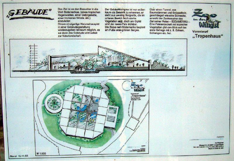 | IP66: | Der Plan scheint mir gewisse Spaßzoo-Elemente zu enthalten, die mich bei einer so kleinen Einrichtung wie dem Zoo Wingst überraschen. Auf der anderen Seite zeigt etwa die neue Erdmännchenanlage in Duisburg, daß sich die Kunstfelsideen auch in kleinerem Maßstab verwirklichen lassen - weshalb sollte das nicht für den Typus des Urwaldhauses gelten? (15.05.2008, 10:25) | ||