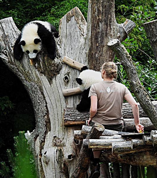 | W. Dreier: | Und die normalen Highlights? die Pandas. Man fraß schon früh - und gegen 11 bemühten sich 2 Pfleger, die Kleinen auf dem Klettergerüst in Bewegung zu bringen - was nicht so richtig gelang. (23.07.2025, 13:47) | ||