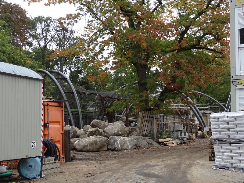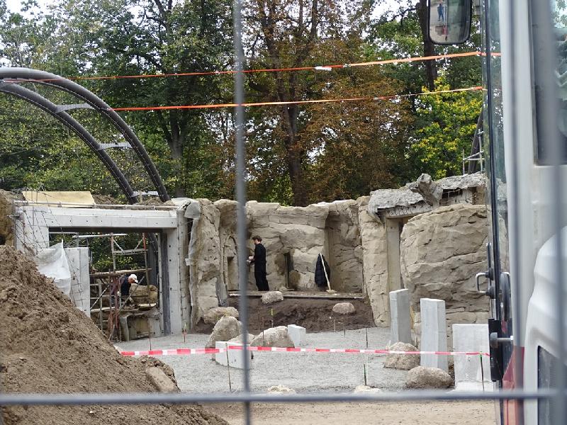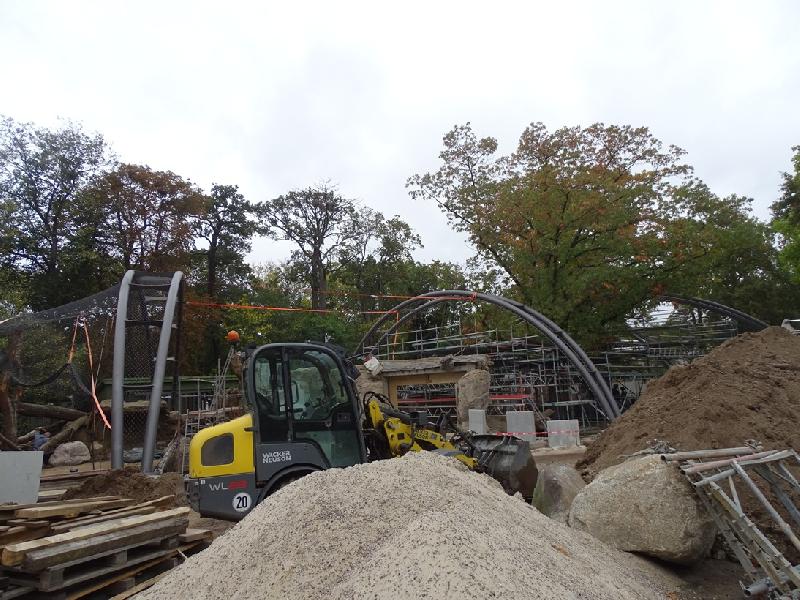 | Regina Mikolayczak: | Gestern war ich nach Feierabend kurz im Zoo, bei nervigem Nieselwetter...Habe mich nur auf wenige Ecken konzentriert. Leider habe ich die Hirscheberferkel nicht gesehen, weil seit ewigen Zeit das Schweinehaus für Besucher nicht mehr betretbar zu sein scheint. Früher konnte man hier ab und zu rein... Zu den Rindern: Ich sah 1,3 Bantengs und 0,1 Rotbüffel. Hier war allerdings die Tür zum Stall offen. Möglicherweise gibt es noch mehr. Bei den Gaur waren mehrere Tiere liegend und stehend. Ich vermute, es sind 1, 5. Kann es aber nicht mit Sicherheit sagen. Bei den Wildhunden sah ich zwei Tiere. Am Quastenstachlergehege war ich nicht, ebenso nicht in irgendwelchen Häusern ober im Erweiterungsgelände. Konzentriert hatte ich mich auf die Baustelle für die Jaguare. Ich werde also hier diesbezüglich einige Bilder mal einstellen. Meine Laufrichtung bzgl der Reihenfolge war vom Prinz-Alfred-Hirsch us gesehen Richtung Tigeraußenanlage und dann rechts rum (die letzten zwei Bilder) . Bisher ist von einer Art "Brücke" über den Besucherweg also noch nichts zu erahnen... (11.10.2025, 09:05) | ||