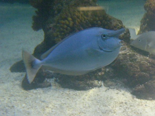 | Michael Mettler: | @Andreas Hg.: Ich wäre so oder so erfreut! Hatte schon angefangen, mir eine eigene Liste des Gesehenen aus der Erinnerung heraus zu machen, aber gerade im Haibecken habe ich wahrscheinlich viele Arten noch gar nicht bewusst wahrgenommen. Auch meine Fischliteratur, die ich z.T. seit -zig Jahren nicht mehr in der Hand hatte (weil ich schon länger keine Fische mehr fotografiert habe), habe ich nun wieder hervorgeholt und gleich ein paar "Bekannte" aus SL entdeckt - so auch den Crenicichla lenticulata. Naso vlamingii kann ich inzwischen bestätigen, aber der zweite Naso in der Rochenlagune hat schon wegen seiner Färbung (blau, keine Maserung) wenig Ähnlichkeit mit den N. brevirostris in meinen Büchern - anbei ein Foto. Bei meinem letzten Besuch waren die Fische in der Lagune nicht so hektisch unterwegs wie bei den vorherigen, dadurch konnte ich von einigen relativ brauchbare Fotos machen. (01.02.2008, 13:03) | ||
