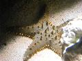 | Michael Mettler: | So, Freunde der Seesterne, dann gibt es Bildmaterial. Den Anfang macht ein recht großes Exemplar aus dem Ankerbecken (= jetziges Seepferdchenbecken). Die kugelige Scheibe mag zwar mehr Größe vortäuschen, aber ich schätze ihn auf 25-30 cm Spannweite/Durchmesser. (11.02.2008, 22:24) | ||