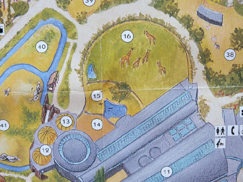 | Michael Mettler: | Die späteren Zoopläne geben die Gehegeanordnung nur als vereinfachte Zeichnung her, ich fand erst im Zooplan von 1996 (als die Elefanten schon ausgezogen waren) eine brauchbare Darstellung des inzwischen veränderten Zustandes. Wie man hier sieht, wurde der ursprüngliche Besucherweg vor Hippo- und Nashornanlage zur Gehegeerweiterung einbezogen und die ursprünglich schlingenartige Wegführung dadurch deutlich abgeflacht. Besatz damals: 14 = Warzenschweine, 15 = Zwergflusspferde, 16 = Giraffen. Zu den Spielfotos: Auf einem der Bilder, bei dem der vordere Kopfbereich des kleineren Afrikaners durch Joops Kopf verdeckt ist, sieht man am linken Elefantenohr einen nach vorn eingerollten Oberrand, wie ihn auch Fotos von Bibi aus ihrer hannoversche Zeit zeigen. Zumindest in der Rotterdamer Liste auf www.elephant.se sind Bibi und Beira die einzigen Afrikaner, die bislang in Blijdorp gehalten wurden. (19.02.2017, 09:12) | ||